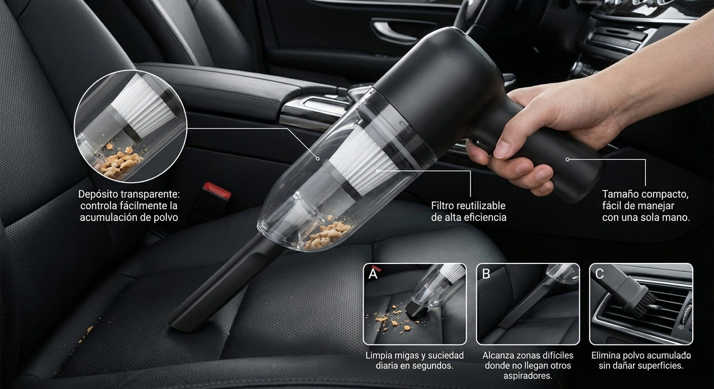 - Tipo: Mini aspiradora inalámbrica portátil